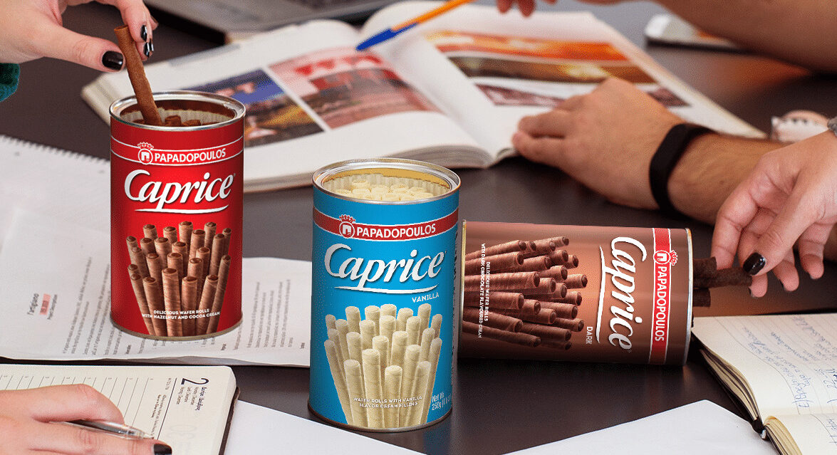A premium indulgent snack made of wafer rolls with hazelnut and cocoa cream filling, Caprice has been one of Greece’s favorite snacks! Since then, Caprice has been a leading brand among confectioneries in Greece and soon became the company’s global flagship brand.